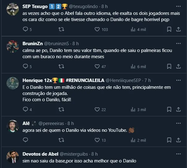 Até por Danilo ser uma cria das divisões de base do Clube, o carinho pelo volante é enorme. Até por isso, por mais que Abel tenha falado na intenção de valorizar o seu jogador, o tema gerou um burburinho na web.