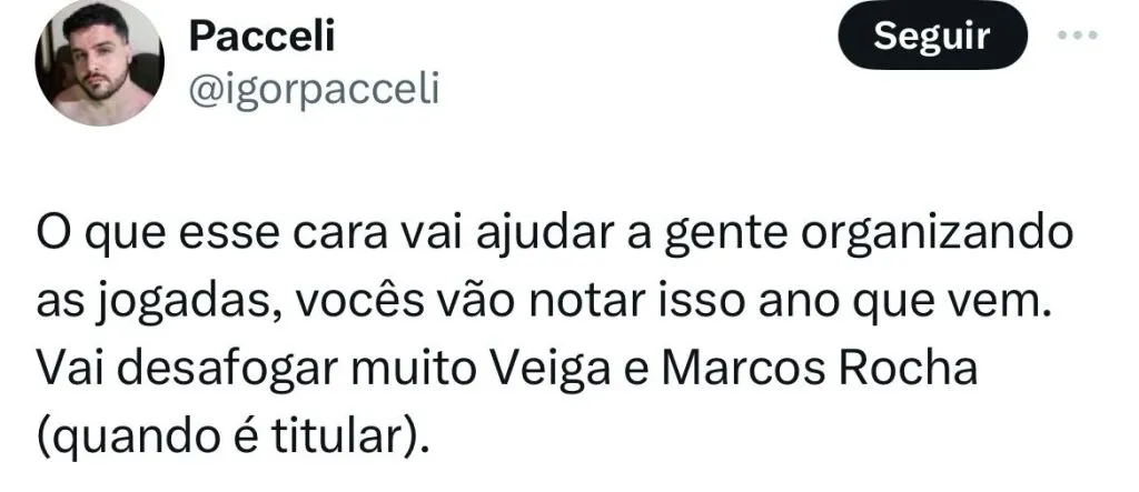 O Nosso Palestra também apurou que além de ser um pedido de Abel Ferreira, o jogador se enquadra na política de contratações do Clube. Volante jovem, com experiência e que pode ser revendido no futuro de médio a longo prazo.