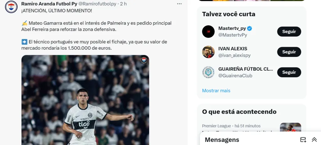 O contrato de Gamarra no Olímpia vai até o fim de 2025. Curiosamente com a mesma numeração de Gómez, o jogador do clube paraguaio pode ser uma espécie de substituto para o capitão do Palmeiras, que vem sendo assediado por clubes do exterior. Nos últimos dias, o zagueiro alviverde rechaçou proposta de US$ 30 milhões do Al-Ittihad, de Karim Benzema na Arábia Saudita.