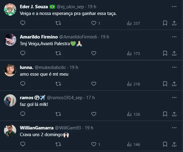 “Os números do Abel falam por si só, é um cara que admiro e respeito. Criou-se até uma relação de uma certa amizade com a equipe técnica. A gente sempre trocou mensagens, não com o Abel, mas com pessoas do corpo técnico”, revelou, destacando que chegou a se comunicar com a comissão do treinador alviverde.
