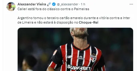 Ele também comentou sobre a ausência de Calleri, que não joga por estar suspenso. “Calleri é uma perda grande, mas procuro não lamentar e, sim, valorizar a oportunidade. Alguém vai ter oportunidade. Vamos analisar”.