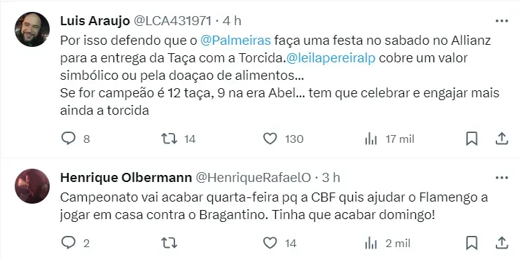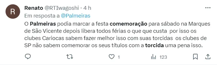 Mas, por uma questão da logística dos jogadores para o fim da temporada, possa ser que a comemoração entre elenco palmeirense + torcida, seja celebrado em um curto espaço de tempo.