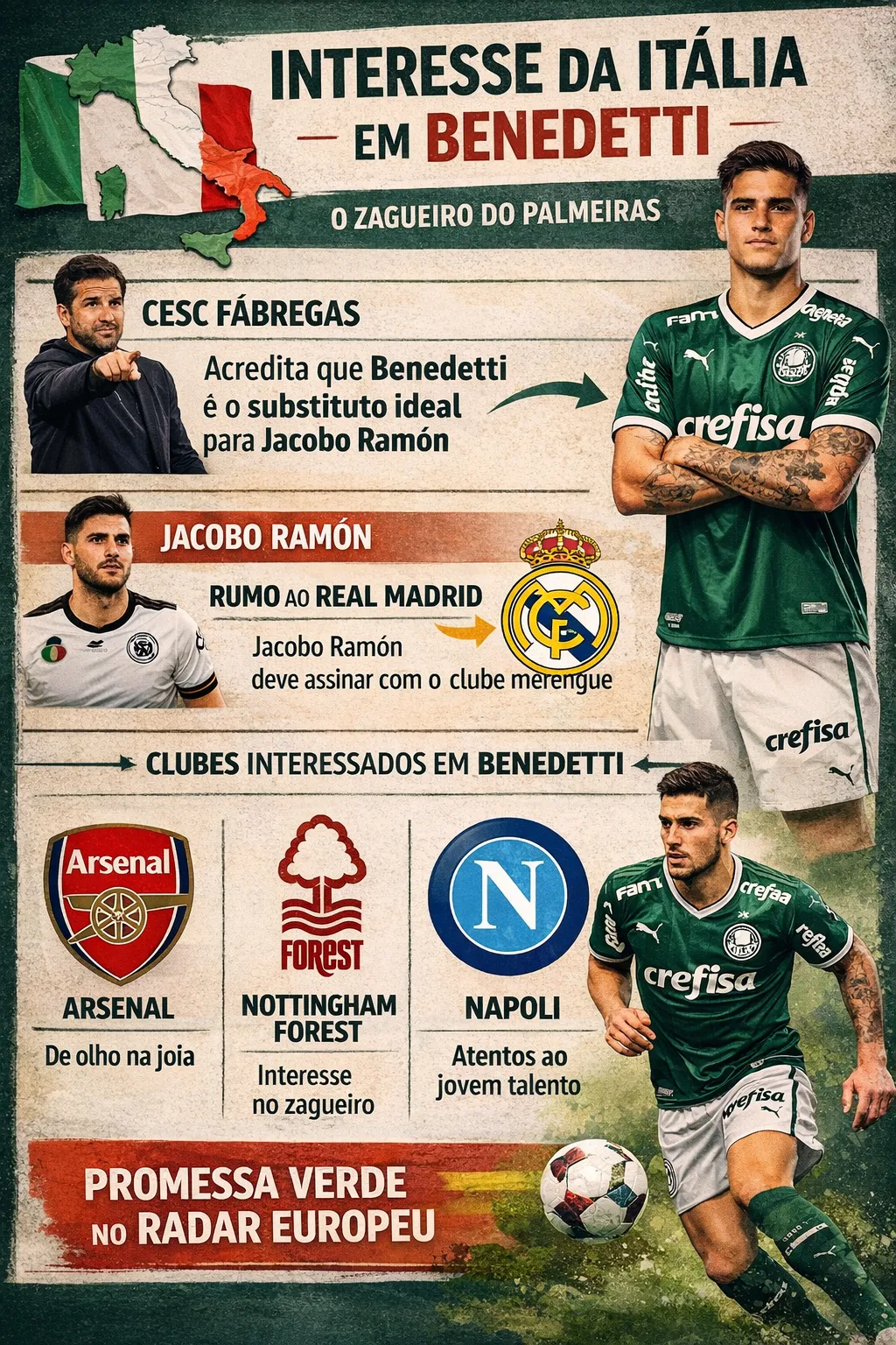 O Palmeiras, que já vendeu vários jovens revelados nas categorias de base por valores astronômicos recentemente, pode realizar outra negociação: de acordo com o jornal As, o Como, da Itália, estaria interessado por Benedetti: