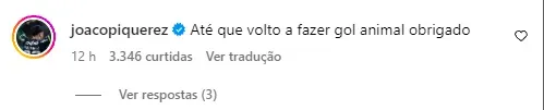 Por meio do Instagram, o defensor parabenizou Rony. A mensagem de Piquerez vem repercutindo entre os adeptos pelo adjetivo utilizado. O uruguaio enviou a seguinte mensagem: “Até que volto a fazer gol animal obrigado”.