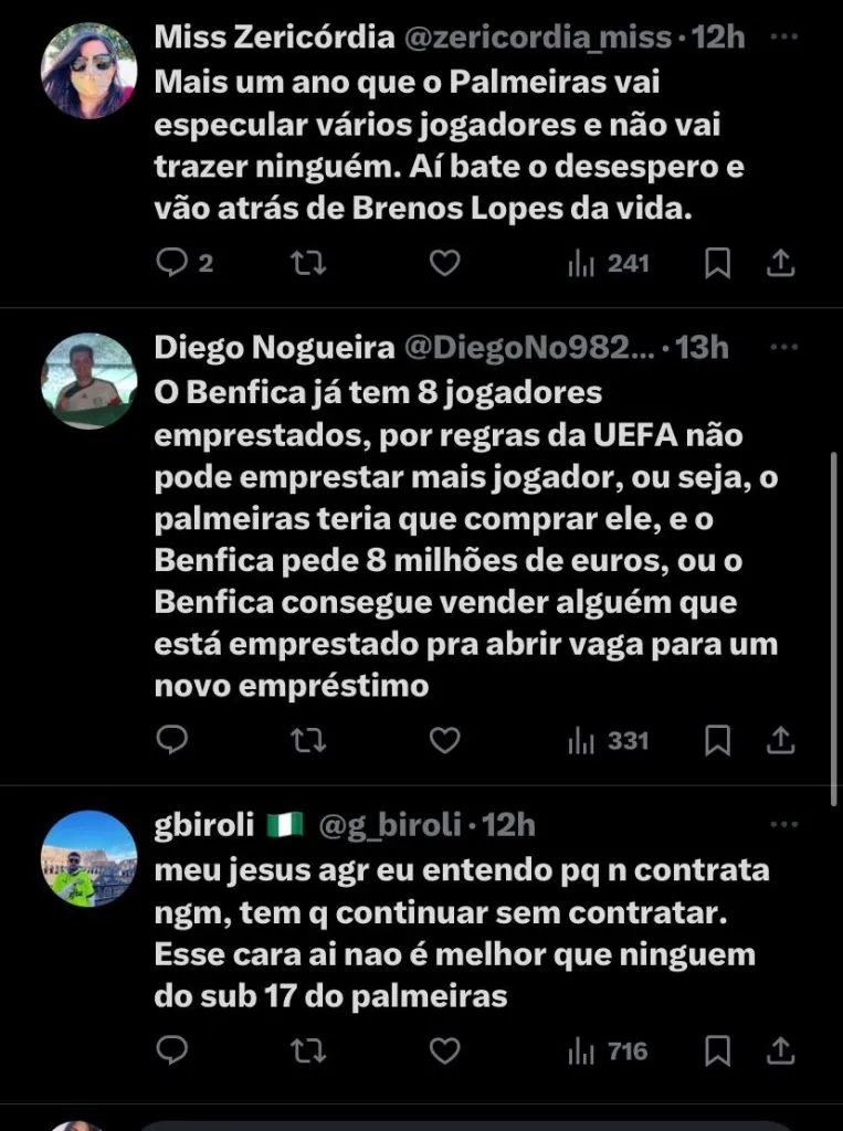 Em postagem no X (antigo Twitter), o jornalista de Portugual, Luís, falou sobre o interesse do Verdão: (SIC) “Palmeiras é, hoje, o clube mais bem posicionado para receber o zagueiro João Victor, ex-Corinthians”, disse.