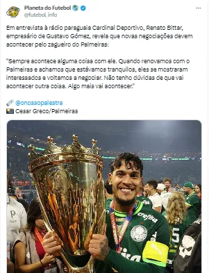 A grande preocupação dentro da Palestra é sobre o fator do empresário de Gustavo Gómez, Renato Bittar, em entrevista para a Rádio Cardinal Deportivo, ter deixado em aberto o futuro do defensor. Ele destacou que tem propostas pelo jogador.