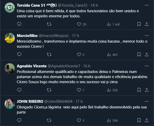 É interessante destacar que, como chegou ao Clube em 2015, ainda com Paulo Nobre na presidência, Cícero viveu todo o período de reestruturação do Palmeiras. Afinal, 2014 quase ficou marcado como o ano do terceiro rebaixamento.
