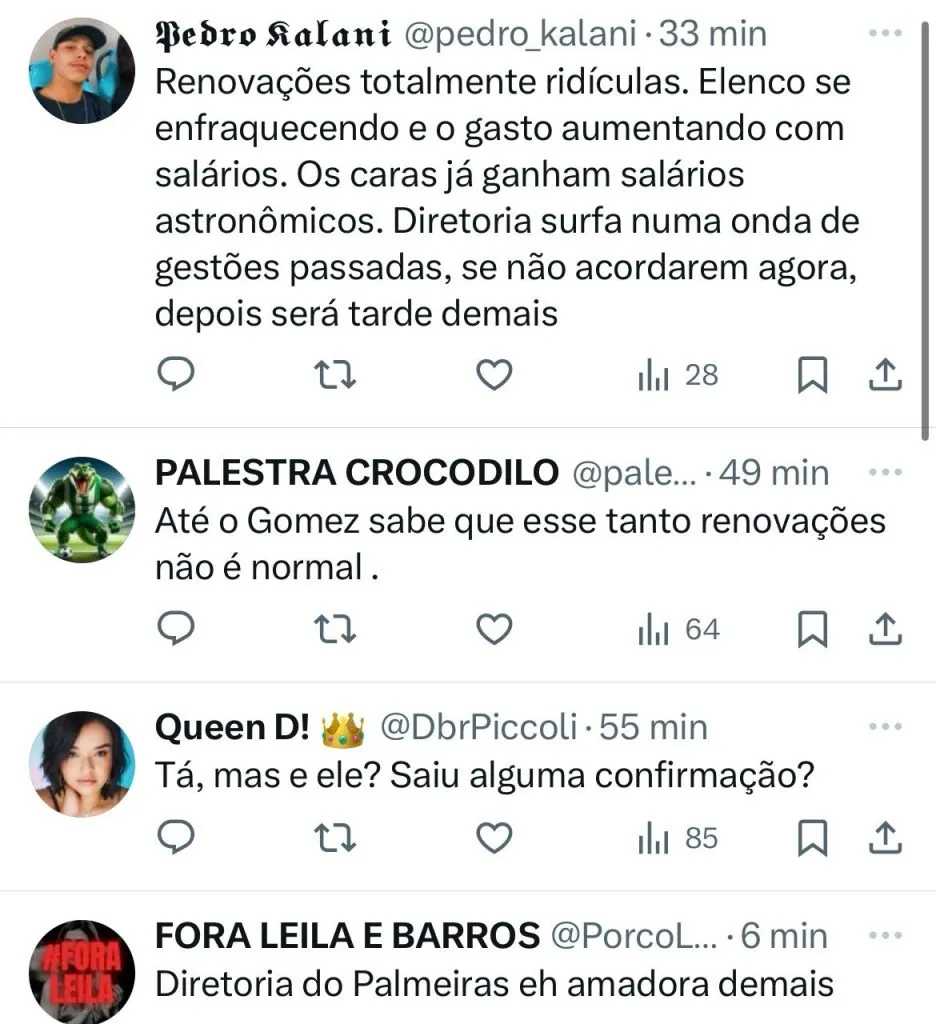 O Palmeiras ainda está no mercado em busca de pelo menos mais um meio-campista. Não há negociações em andamento por nenhum atleta, mas a diretoria prometeu a Abel que irá trazer um reforço para a posição até o final desta janela.