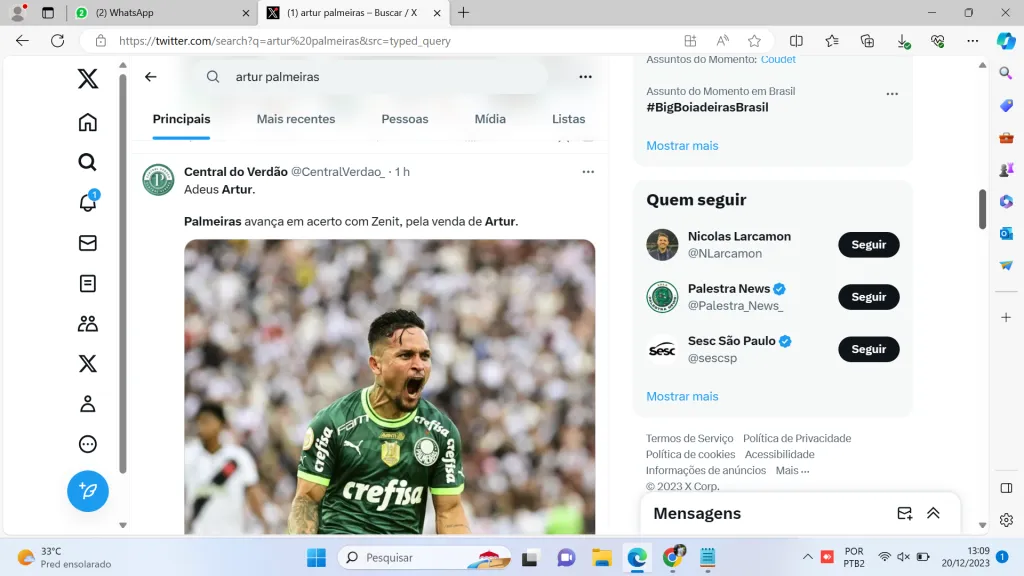 Negócio de Artur no Palmeiras