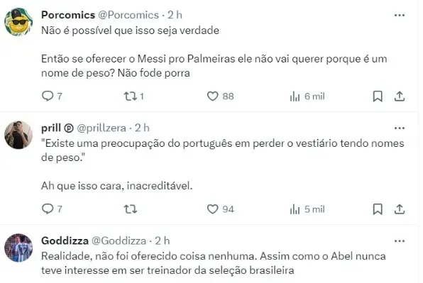 O nome foi levado a Abel Ferreira, que disse que o atacante não é o tipo de perfil que o treinador gosta. Existe uma preocupação do português em perder o vestiário tendo nomes de peso.