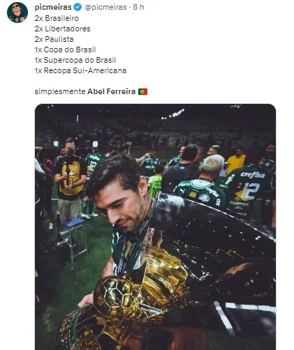 Para se ter noção, de forma oficial, Abel Ferreira passou Vanderlei Luxemburgo e se consagrou como o segundo treinador com mais títulos na história do Alviverde, agora, ele só fica atrás de Oswaldo Brandão, que soma 10 ao todo.