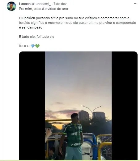 Com gol marcado por Endrick, o Verdão chegou à sua 12ª taça do Brasileirão, sendo a segunda consecutiva de Abel Ferreira e do próprio camisa 9, que se tornou o protagonista da temporada atual.