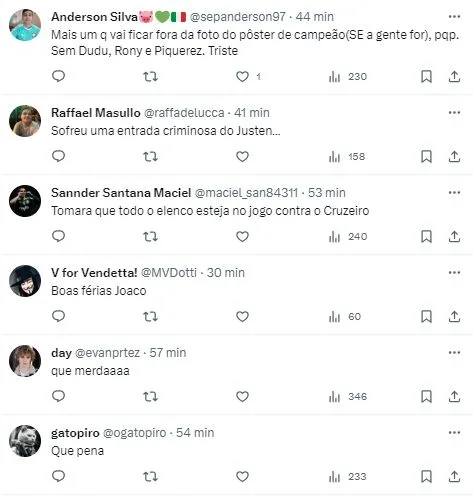 Contudo, agora resta apenas uma rodada. Na próxima quarta-feira (6), o Palmeiras encerra suas atividades em 2023, diante do Cruzeiro, no Mineirão. O duelo deve ter menos pressão do que o projetado, afinal, a equipe mineira conseguiu se livrar do rebaixamento.