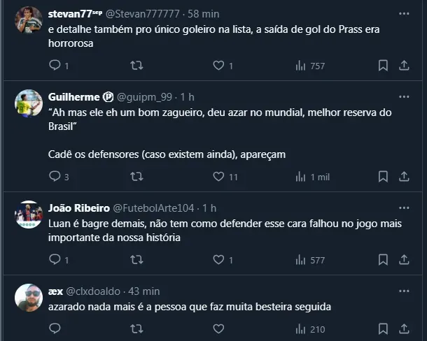 Por fim, apesar da estatística não significar muito em termos de carreira, vale destacar que Luan é um dos poucos que esteve atuando no país durante todas as temporadas. Dito isso, o próximo compromisso do Verdão será amanhã (24), diante do Mirassol.