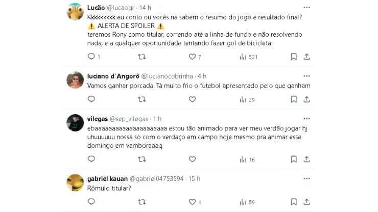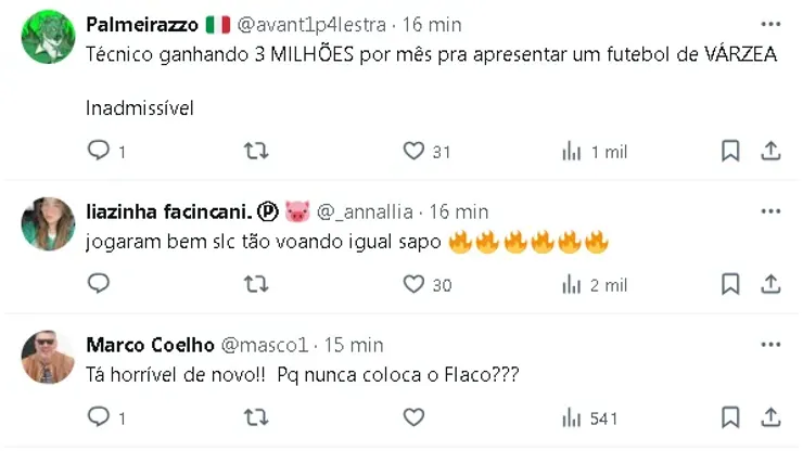 – É uma competição difícil. Tem equipes que jogaram mais e estão com a mesma pontuação que nós. Tem equipes com cinco jogos e um ponto atrás. E o Criciúma tem apenas três jogos. Vamos jogar contra o Palmeiras, buscar somar pontos.