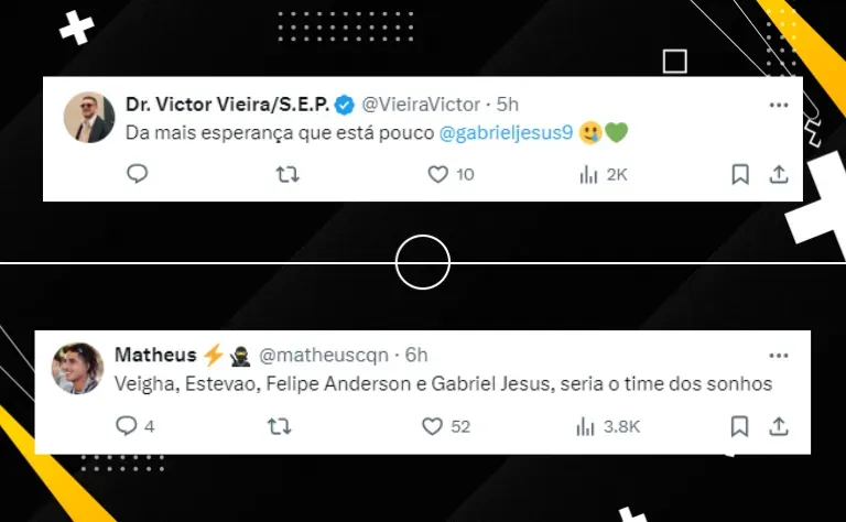 Com a fase do Alviverde, boatos sobre a volta de Gabriel Jesus aumentaram com as recentes grandes vendas efetuadas pela atual gestão, e uma postagem do atacante elevou as expectativas dos palmeirenses.