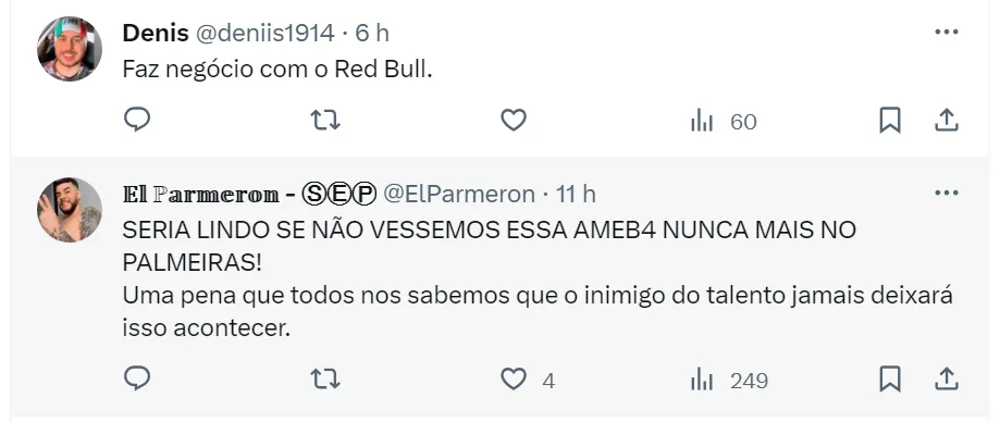 Mas não para por aí: o meia Eduard Atuesta, que pouco atuou nesta temporada pelo Palmeiras, está sendo observado por Cruzeiro e Red Bull Bragantino, segundo informou o setorista Diego Firmino.