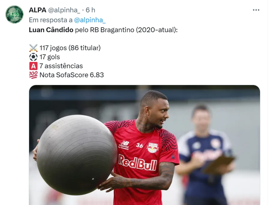 Uma fonte contou à nossa reportagem que Luan valorizou muito em 2023 e o Bragantino não pensa em negociação para rivais no Brasil. A multa é elevadíssima para os padrões nacionais.