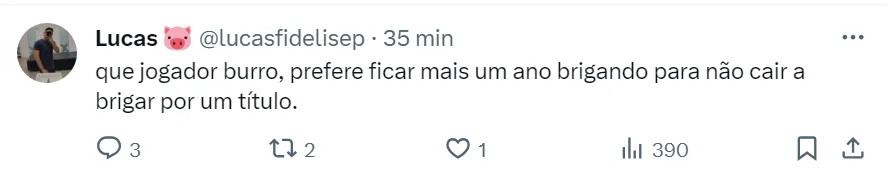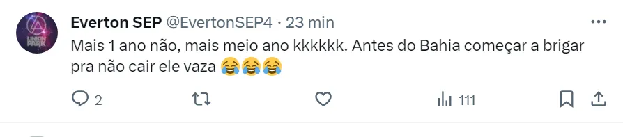 Ainda segundo ele, o jogador de 28 anos não tem a intenção de deixar o Tricolor Baiano para ir atuar em outro clube brasileiro, o que deixa difícil o Palmeiras conseguir fechar essa contratação.