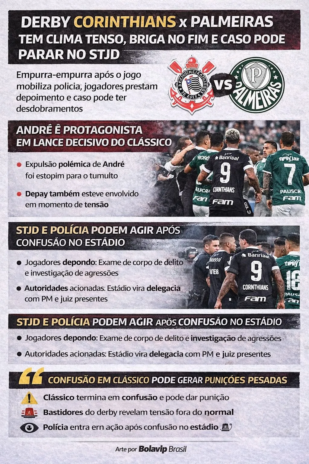 O STJD também acompanha a situação e pode aplicar sanções esportivas ao Corinthians, dependendo do que for apurado. Entre as possibilidades estão punições a jogadores e até medidas relacionadas ao estádio. O desfecho ainda é incerto, mas o episódio já é tratado com seriedade. O clássico deixa marcas que vão além das quatro linhas.