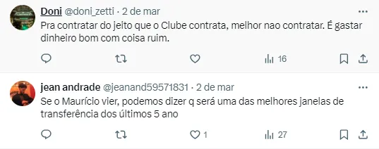 Manifestações da torcida sobre o mercado da bola