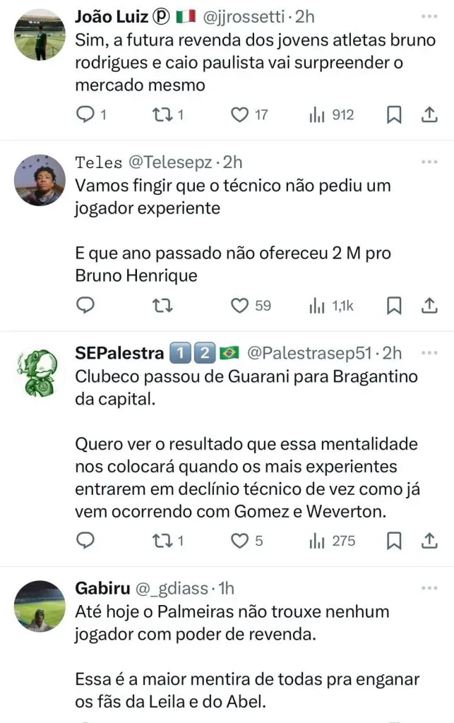Trata-se do argentino Luciano Gondou, que atua no Argentino Juniors e também de Julian Carranza, que defende o Philadelfia, dos Estados Unidos. Carranza é muito bem avaliado não só no Palmeiras, mas em outros times da Série A e também do futebol brasileiro. Ainda de acordo com o repórter, mais novidades podem aparecer nas próximas semanas, enquanto o artilheiro do Lanús tem estilo de jogo parecido com o do atacante Flaco Lopez.