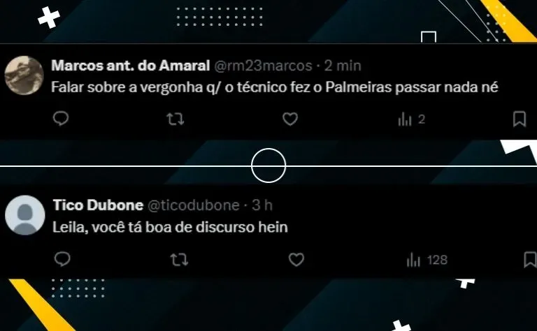 A mandatária pregou otimismo para o restante da temporada de 2024. Mesmo com as eliminações nas quedas, Leila quer o Palmeiras focado para buscar o tricampeonato no Brasileirão, feito conquistado pelo rival São Paulo entre 2006 e 2008.