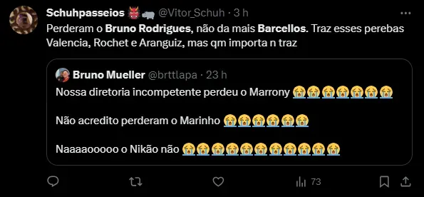 “Recentemente teve o Bruno Rodrigues, que estava apalavrado conosco. Chegou a valores que, respeitando o Palmeiras que fechou, são significativamente elevados para o tipo de negócio. Infelizmente, não tivemos a palavra mantida” disse.
