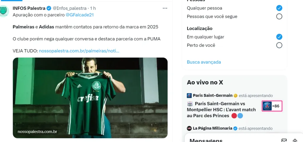 Pessoas envolvidas na negociação dão com muito bem encaminhada a volta da marca. A promessa da Adidas, que deixou o Clube da última vez em 2018, é de protagonismo do Palmeiras, dentro da marca, ao lado do Flamengo.