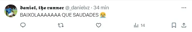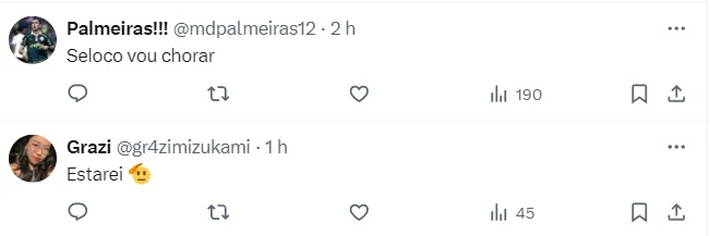 Outro escreveu: “Baixola, que Saudades”. “Se loco, vou chorar”, comentou outro Palestrino nas redes sociais. Ao todo, Endrick e Dudu só atuaram juntos em 41 jogos.