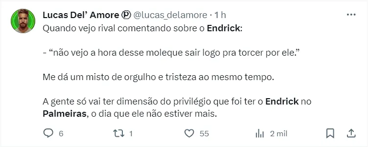 – Vô, qual era a sensação de ver o endrick jogar pelo Palmeiras?