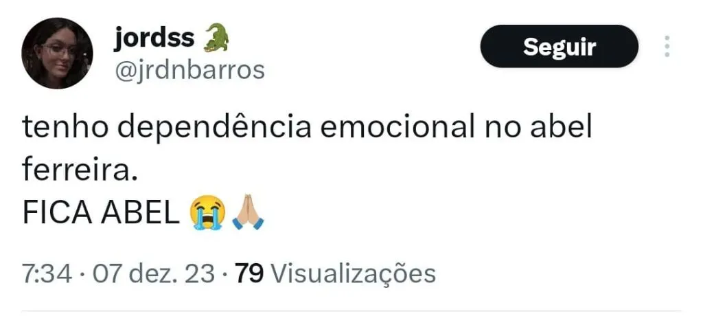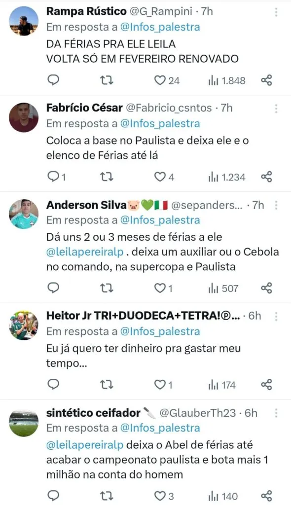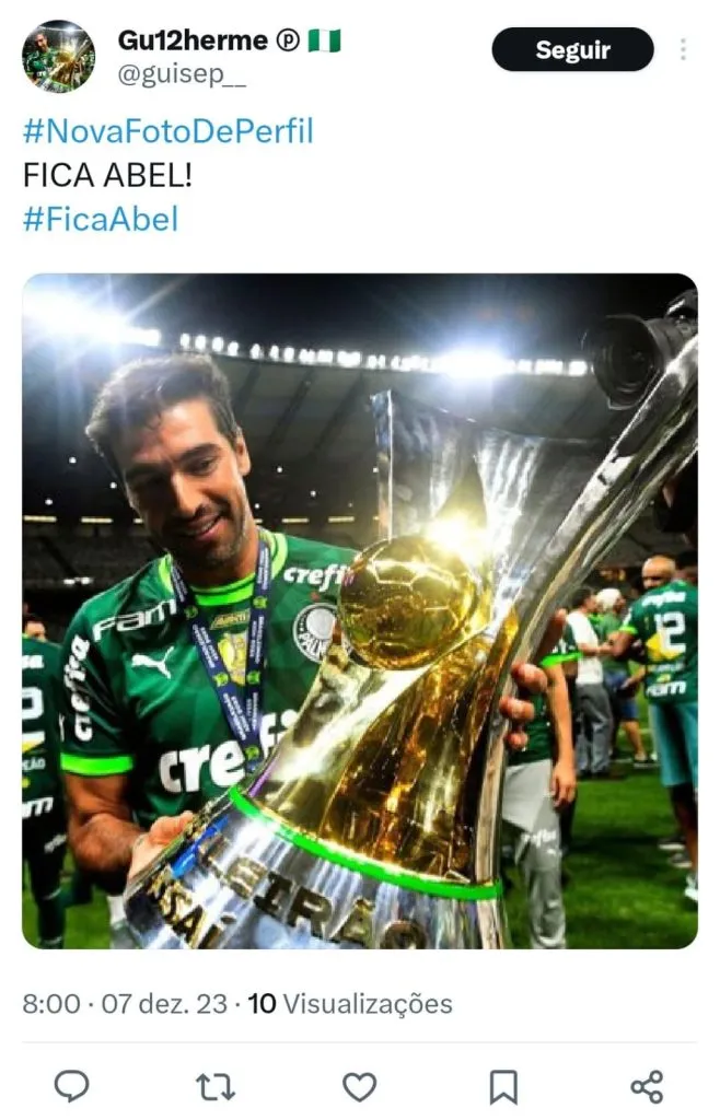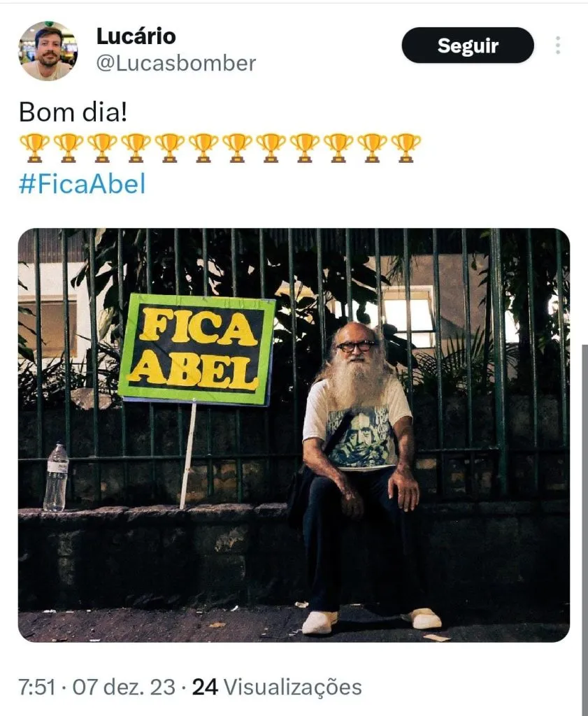 Para aflição do torcedor alviverde, Abel não garantiu a sua permanência para temporada 2024. “Vocês sabem que tenho contrato, no futebol não posso garantir nada. Quando cheguei aqui não podia prometer títulos, só uma equipe de qualidade.”, disse Abel ainda no gramado.