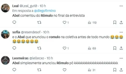 “O Rômulo é um jogador que a gente já tinha visto no ano passado e vai chegar para nos ajudar”, disse Abel Ferreira, antecipando até mesmo a diretoria, que não havia cravado essa novidade de forma oficial.