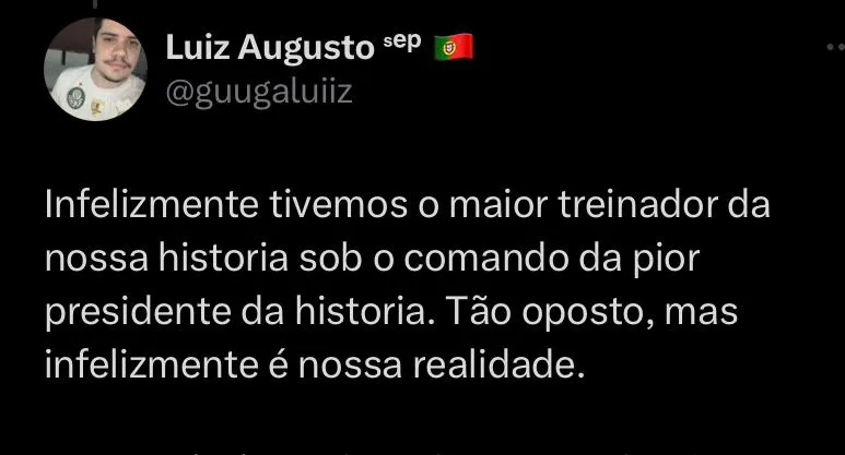 Principal organizada do clube escondeu patrocínios da camisa estampados em bandeirão durante o jogo da última quinta-feira (19). “Ô, Leila, incompetente, pegou o Palmeiras para brincar de presidente”, “Ô, Leila, preste atenção, muito respeito com a história do Verdão” e “Barros, c…, fora do Verdão” foram alguns gritos oriundo das arquibancadas.