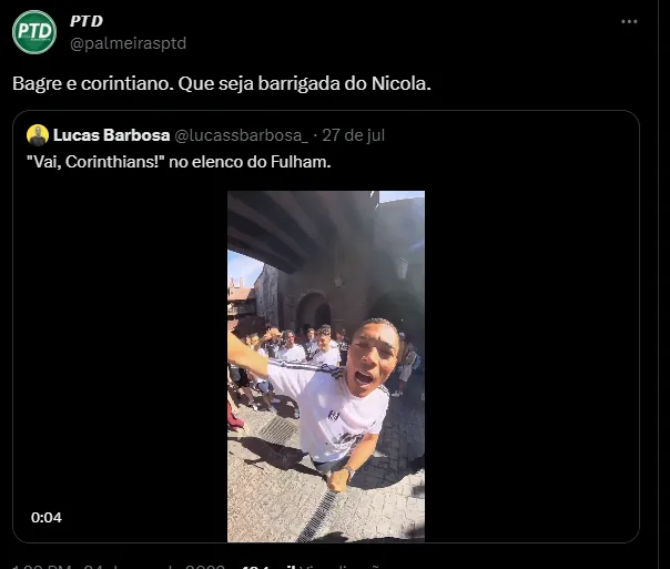 No entanto, a sua vinda pode ser ‘atrapalhada’ por conta de um vídeo que viralizou. A filmagem mostra Carlos Vinicius gritando ‘Vai Corinthians’ vestindo a camisa do Fulham, durante uma caminhada com a equipe.