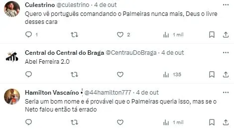 Porém, há outro treinador português que vem se destacando na competição. Tal fato, rendeu um curioso e até mesmo aleatório comentário do apresentador Neto, envolvendo o Palmeiras. Para o ex-jogador, Abel já tem um substituto no Palmeiras.