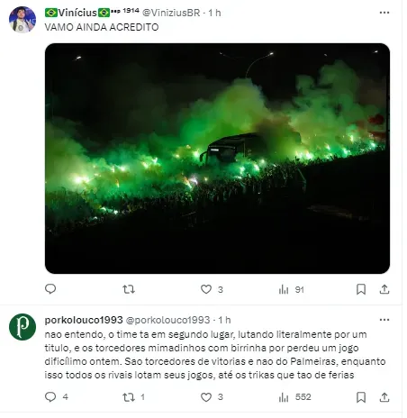 Já nos bastidores, Abel e seus jogadores conversaram internamente sobre os próximos duelos e que apesar do jogo, ainda há possibilidades para o Palmeiras e o cenário ainda é possível, desde que o Palmeiras vença todos os jogos.
