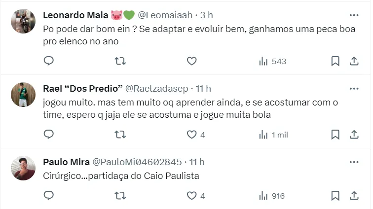 Acredita que Caio Paulista pode fazer uma boa temporada pelo Palmeiras?