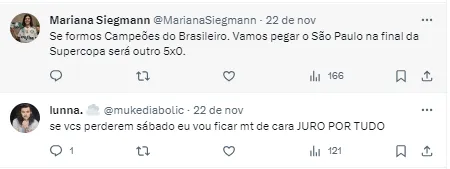 “Apoio nunca faltou e não será nessa fase final, onde depende só de nós, que faltará. Vamos todos para a frente da Academia de Futebol demonstrar nosso apoio aos jogadores e comissão técnica (…)