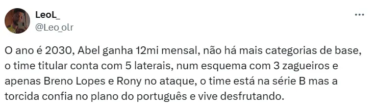No fim do ano passado, rumores apontavam um possível adeus de Abel Ferreira, que estaria na mira de clubes do Catar. Com esforço da diretoria, o português ficou. A presidente, por sua vez, quer Abel ao seu lado até o fim.