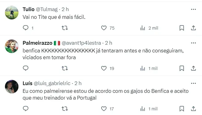 O que dizem os torcedores do Palmeiras e do Benfica nas redes sociais