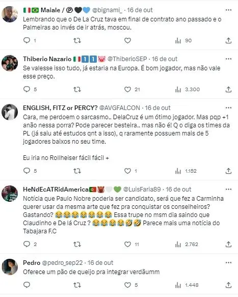 Acredita que o Palmeiras vai disputar com força a contratação de De La Cruz?