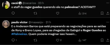 Em seu canal no YouTube, o jornalista Jorge Nicola revelou que entrou em contato com Paulo Pitombeira, empresário do jogador e recebeu a resposta de que a informação sobre Róger Guedes ter sido oferecido não procede.