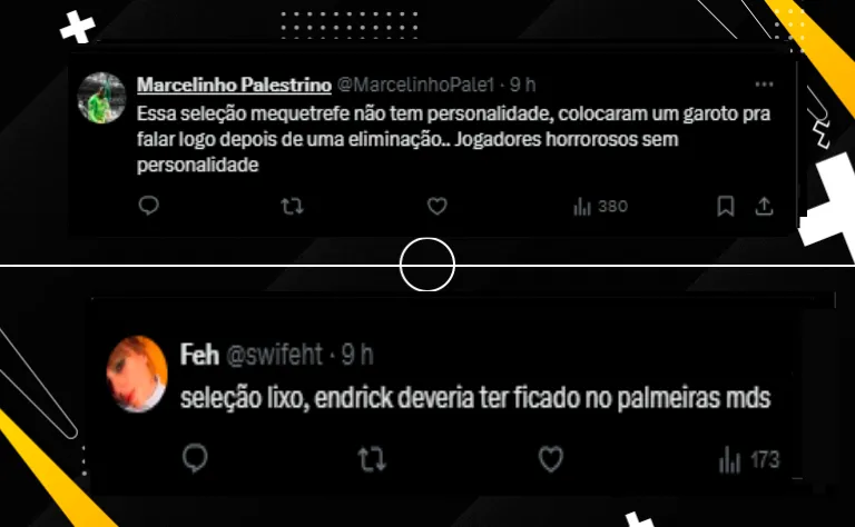 Outro torcedor foi na mesma linha: “Só o Endrick pareceu realmente abalado com a eliminação do Brasil da Copa América, os outros jogadores entrevistados parecem não se importar, como se não fizesse a menor diferença”, disse.