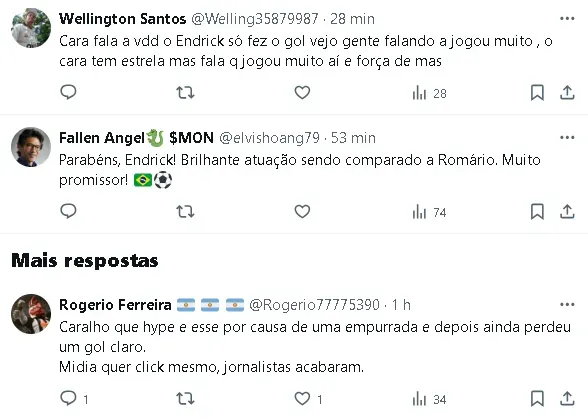 Enquanto isso, o ex-jogador Joe Cole, comentarista do Channel 4, enxergou semelhanças entre Endrick e Romário, destacando o estilo de jogo e a alegria do jogador em campo.
