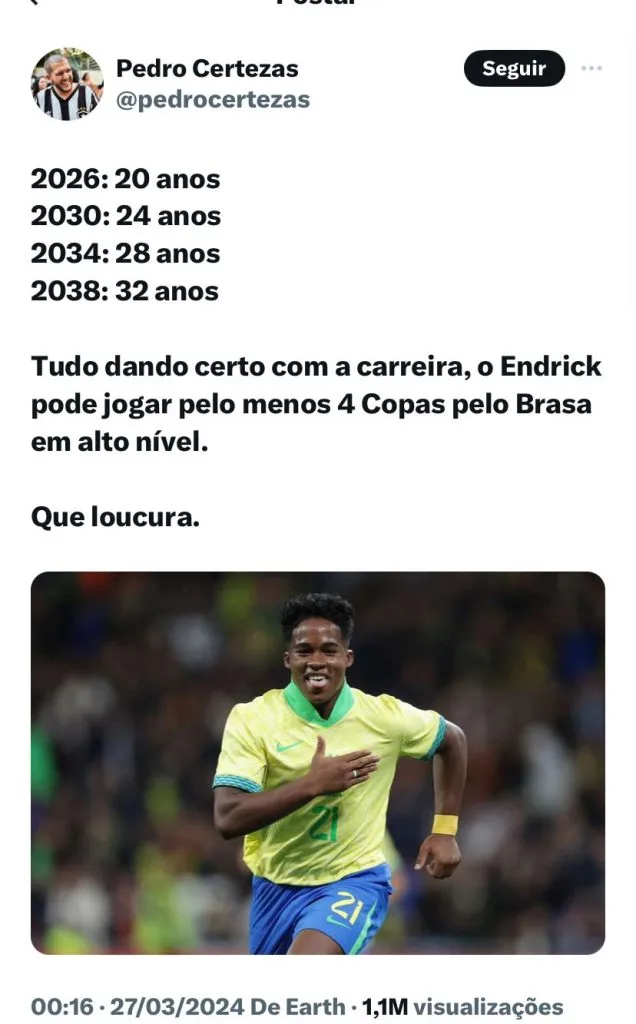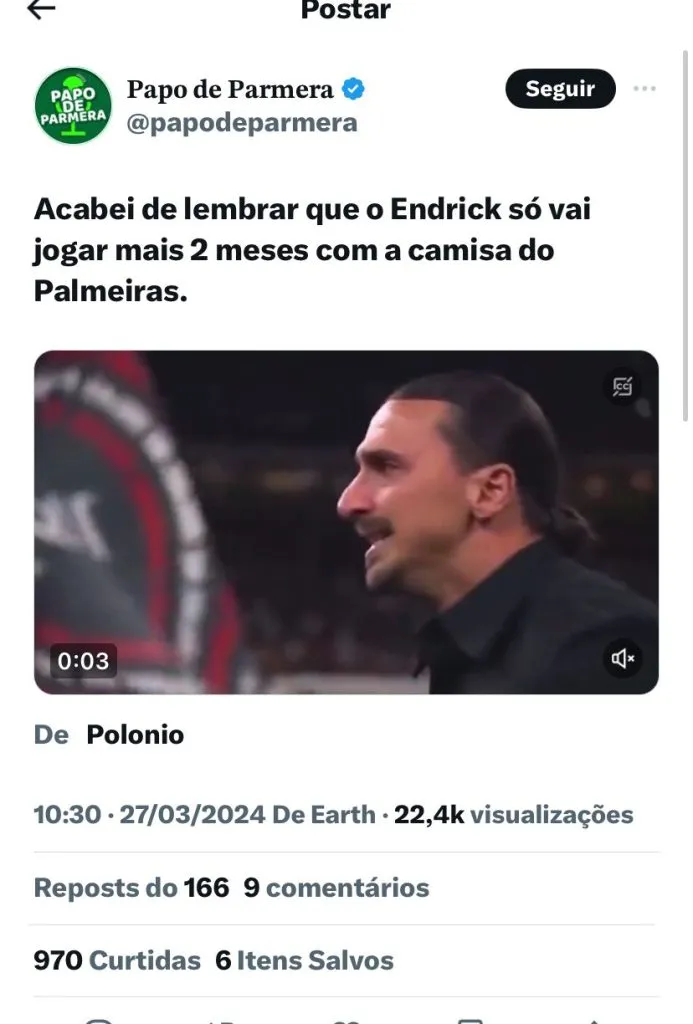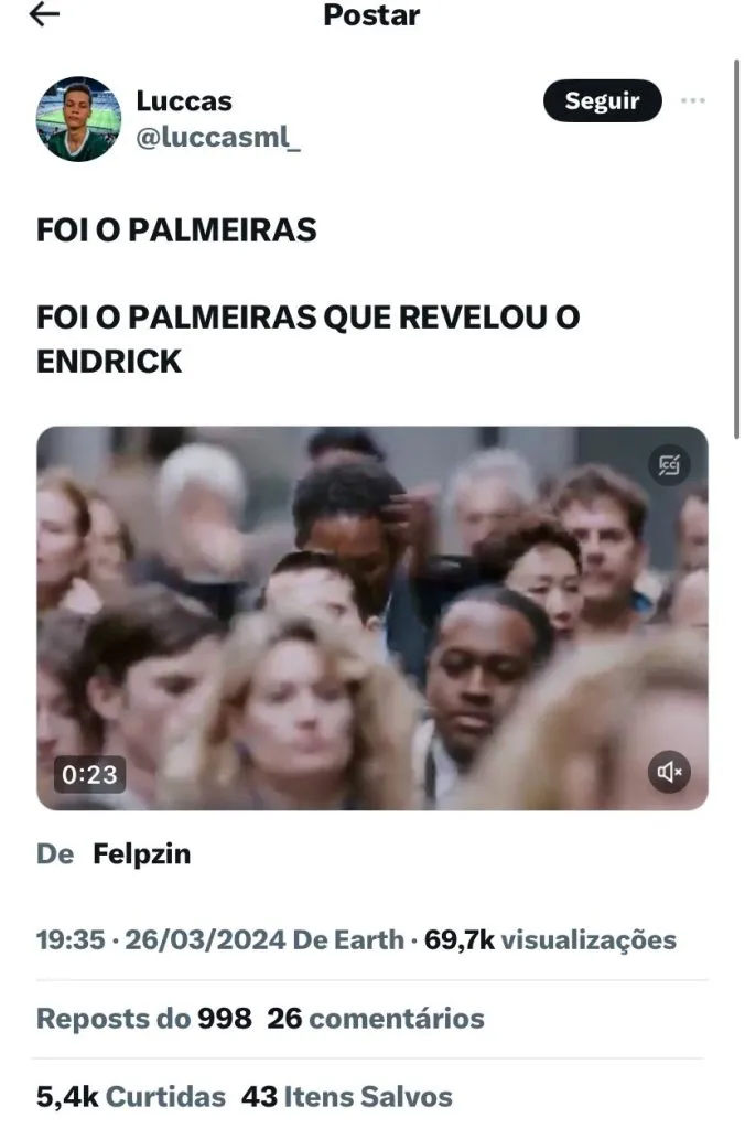 Dadas as circunstâncias, após brilhar com a camisa da Seleção Brasileira e mais uma vez fazer o seu nome com a Amarelinha, Endrick retornou para jogar a decisão e buscar aquele que pode ser o último título integral pelo Verdão.