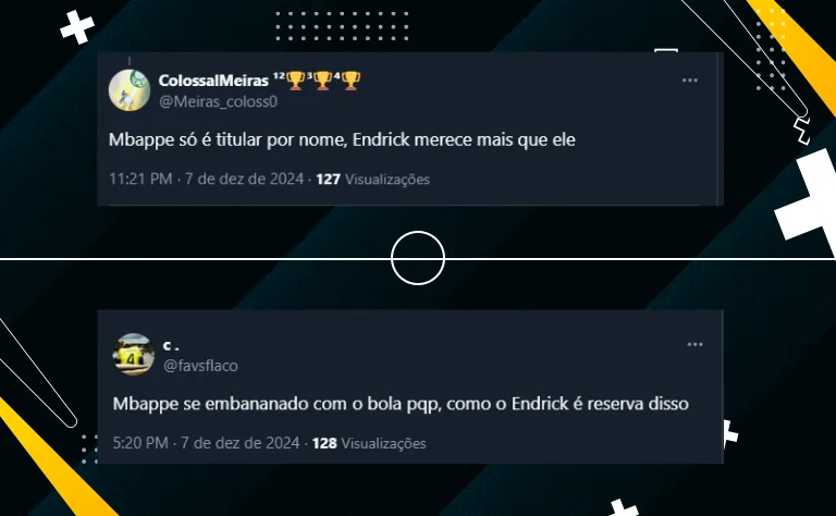 Entretanto, o início da trajetória da joia palestrina no Real Madrid (ESP) não tem sido nada fácil. Até aqui, Endrick disputou 11 partidas em La Liga e só conseguiu marcar um gol. No entanto, algumas atitudes de Ancelotti estão repercutindo negativamente entre palmeirenses e torcedores de outras equipes.