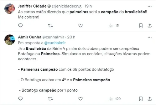 Sobre o assunto, o comentarista Alexandre Praetzel, da Rádio Bandeirantes, revelou que seu sentimento é de que o Botafogo, independentemente do que vem sendo feito pelo Verdão, vai conquistar o título: