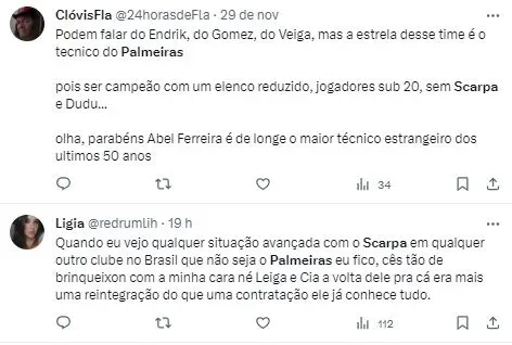 Importante lembrar, que Santos, Atlético-MG e São Paulo também demonstraram interesse em Scarpa. Saindo das nuances de mercado e voltando aos gramados, o Palmeiras se prepara para encarar o Fluminense, neste domingo (3), no Allianz Parque.