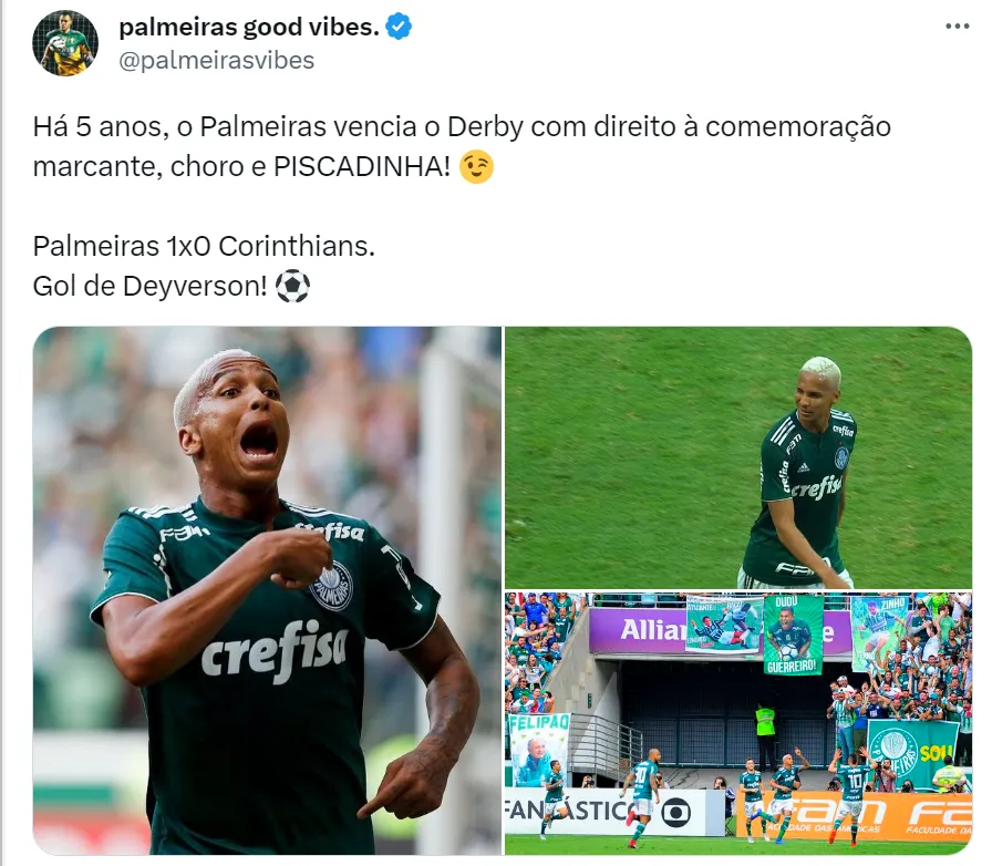 Deyverson é muito querido no Palmeiras, apesar de não ter tido contrato renovado em 2022. O atacante marcou o gol do título do Verdão na final da Copa Libertadores de 2021, contra o Flamengo, e o treinador Abel Ferreira em entrevista recente foi só elogios quando enfrentou o jogador pelo Brasileirão.
